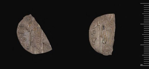 Curator: This is a reproduction of a gold Mycenaean bead, likely crafted by Emile Gilliéron or his son. Its modest size – about an inch wide – belies its significance. Editor: Immediately, I see a narrative bursting from this tiny rectangle; a figure, possibly in motion, surrounded by plant forms perhaps? It feels very primal. Curator: Gilliéron was known for his meticulous reproductions of Mycenaean artifacts. This particular bead presents questions of authenticity and the value we place on originals versus copies. The very act of reproduction is a commentary. Editor: The scene seems to depict a goddess, maybe Potnia Theron, mistress of animals. The plants could be symbolic of her domain, of nature's abundance. Curator: Indeed, and the material itself – gold – speaks to wealth, power, and the labour required to extract and work it. The production process and its social implications are fascinating. Editor: For me, though, it’s the enduring power of the symbols. The image resonates across millennia, touching on archetypal themes of divinity and our connection to the natural world. Curator: I see this bead as a microcosm of Mycenaean society, reflecting resource management and skilled craftsmanship. Editor: It serves to remind us that certain stories and symbols remain potent throughout human history.
