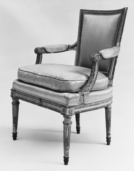 Editor: This is Duncan Phyfe's "Side Chair," crafted between 1822 and 1825 from wood. It’s a great example of American Neoclassical furniture, very elegant with its curved lines and refined carving, but something about it feels almost severe. How do you interpret this work in light of its historical context? Curator: Absolutely. It's critical to remember that Neoclassical style in America wasn't just about aesthetics; it reflected deeply held social and political aspirations. While Phyfe created furniture for wealthy elite, the clean lines and restrained ornament also embody Republican ideals. How does this tension between luxury and republicanism manifest in the chair's design, do you think? Editor: I see what you mean! The craftsmanship is undeniably high-end, but there's a simplicity that perhaps mirrors democratic values, it shuns overt displays of excessive wealth like, say, the French aristocracy. So, it's trying to communicate status, but in a uniquely American way? Curator: Exactly. The chair becomes a loaded signifier within early American society. Can we even consider the exploitation that allowed such craftsmanship to thrive during that period? Were those artisans, like the enslaved people, given credit for their contributions, or were they just cogs? Editor: That brings up a critical point about whose labor created this beauty, it adds a troubling layer. Thinking about the chair now, it represents privilege, erasure, and the complex negotiations of identity within early America. Thank you for making me consider its deeper context. Curator: That's the power of examining design through an intersectional lens: understanding the chair’s beauty and grappling with its complex history!