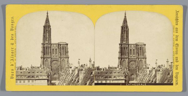Editor: So, here we have a photograph from the late 19th century, sometime between 1873 and 1890, of the facade of the Cathedral of St. Michael and St. Gudula in Brussels. The photographer is unknown. It's striking, the stark geometry, like a cathedral trapped in amber. What stands out to you in this image? Curator: Amber! Yes, what a wonderfully evocative way to put it! It makes me think of petrified history. It's more than just a picture of a building; it’s an encounter, isn’t it? A meeting between then and now. The anonymous photographer—what were they hoping to capture, do you think? Was it just documentation, or was there something more, something of their own soul reflected? Editor: Hmm, I guess documentation at the time, perhaps? But maybe that very desire for "pure" documentation is, in itself, an act of interpretation. This very still image… how do you think its stillness affects its meaning? Curator: The stillness amplifies the weight, doesn’t it? It invites a deep consideration of time and presence, not only of the cathedral's enduring existence but of our own fleeting moment with the photograph. The gaze, unblinking, that holds two worlds. It is a silent shout, if you will. Don’t you think? It urges a silent contemplation. Editor: I see what you mean. It makes you think about what the building has seen, what it represents. All those years silently witnessing history. I initially saw this photo as just a cityscape of the facade, but it almost becomes like a portal through time. Curator: Absolutely! And doesn't this new found relationship with an ‘old’ picture affect our day to day life now? It all blurs in a wonderful mesh.