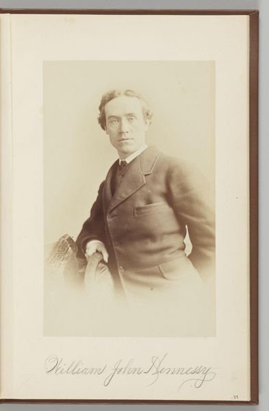 Curator: Here we have Maurits Verveer's "Portret van een man met een stropdas," a captivating albumen print dating from somewhere between 1861 and 1883. It currently resides here at the Rijksmuseum. Editor: My first impression is one of quiet dignity. The tonality is quite subdued, emphasizing the man's reserved expression and careful pose. There’s a strong sense of formality, a compositional stillness. Curator: Indeed. During this period, photography became more accessible to the middle classes, and portraits such as these were commissioned to project a specific social standing. The inclusion of a tie, relatively novel for the time, marks him as a modern gentleman. Editor: Semiotically, then, the tie functions almost like a signifier of middle-class ambition and modernity, subtly broadcasting the subject’s place in a shifting social landscape. Notice how the crisp, well-defined lines of his coat create a visual framework, a sort of stage upon which he presents himself. Curator: It is crucial to recognize that photographers such as Verveer played a key role in the construction of national identity during this period, presenting idealized versions of Dutch citizenry through portraiture. How might these images contribute to, or even contest, societal hierarchies and norms of representation? Editor: Well, the photographic technique itself flattens the three-dimensional space. That transforms this individual into a reproducible image that becomes a form of cultural currency—his identity circulating, viewed, interpreted. Look closely and the gentle blurring adds an aura of distance. Curator: Interesting point. To further examine the production value, let’s contemplate its display context: within the Rijksmuseum. How does being displayed within a historically esteemed collection influence its interpretation versus a private family collection? Editor: Excellent question. A museum display elevates the subject beyond just a personal remembrance, transforming the portrait into an artifact reflective of 19th-century bourgeois values, anxieties, and aesthetic conventions. The framing becomes just as crucial as the figure it contains. Curator: I agree. It highlights the complexities inherent in photographic portraiture and provides important perspectives to analyze cultural constructions of identity and class during that era. Thank you for your input. Editor: Thank you, I’ve certainly come to view this image with a fresh, informed perspective.