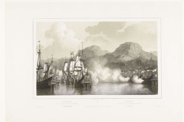 This is Driedaagse Zeeslag, a drawing made in 1853 by Petrus Johannes Schotel, currently held in the Rijksmuseum. The drawing presents a muted palette of grays and whites, setting a somber tone. The composition is dominated by the complex arrangement of warships, their masts and sails creating a dense network of vertical and diagonal lines. The texture is suggested through the detailed rendering of the ships and the subtle gradations in the sky, giving a sense of depth and atmosphere. The use of line and perspective invites a structural reading. The ships, rendered with meticulous detail, symbolize Dutch maritime power, an important signifier of national identity during this period. Yet the chaos of battle introduces an element of instability, challenging any straightforward glorification of naval conflict. Note how Schotel uses the formal elements to construct not just a picture of a battle, but a meditation on power, conflict, and the representation of history itself. This piece functions as part of a larger discourse on national identity and the complexities of historical representation.