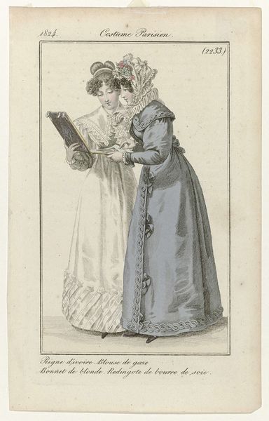 August Delvaux made this fashion plate, featuring two women modeling the latest styles, in 1824. It’s a hand-colored engraving, a process that begins with an incised metal plate which is then printed, and finished with watercolor washes. Look closely, and you’ll see the real subject is textiles. The fabrics on display speak volumes about the burgeoning textile industry of the 19th century. We see variations in texture, from the soft drape of the shawls to the sheen of satin ribbons. Each of these materials represents a chain of labor, from the cultivation of raw materials like cotton and silk, to the complex weaving and finishing processes required to make them. These new materials, often produced in factories and shipped across empires, made this kind of fashion accessible to a growing middle class. Fashion plates like this one were more than just pretty pictures. They played a crucial role in shaping consumer desire, and in circulating the latest trends to a broad audience. They testify to the powerful and often unseen influence of materials and making on our everyday lives.