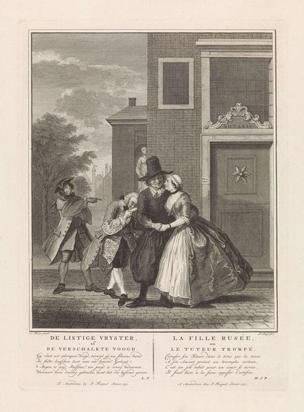 William Hogarth created this print, "Times of the Day: Evening," using the technique of engraving. Hogarth was not only a fine artist, but also a savvy businessman who understood the emerging print market of the 18th century, which allowed artworks to be widely distributed and consumed. Engraving is an intaglio process where the image is cut into a metal plate, allowing for fine lines and detailed scenes like this one. Look closely, and you can see how each mark contributes to the overall composition, from the texture of the fabrics to the shadows on the buildings. This was a laborious process, requiring skilled artisans to translate Hogarth's vision into a reproducible form. Prints like these were commodities, reflecting the era's growing consumer culture. They also democratized art, making it accessible to a broader audience beyond the wealthy elite. Through engraving, Hogarth's work not only captured the social scenes of his time, but also participated in the burgeoning market that reshaped artistic production and consumption. It blurs the lines between fine art and commercial craft.