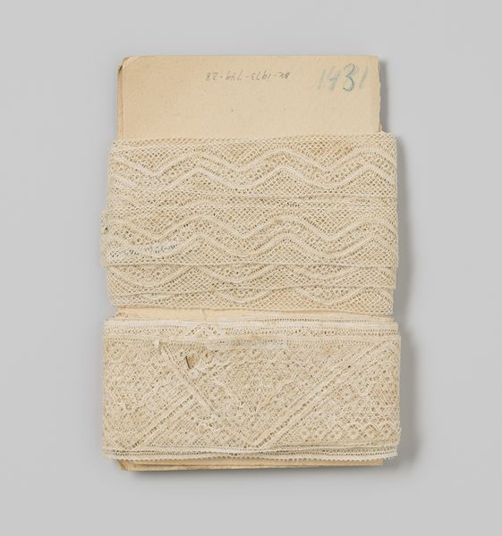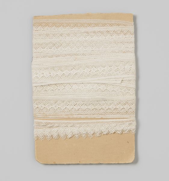 Editor: Right, let's talk about "Lint, écru, met roomkleurig doorstopwerk," or Lint, ecru, with cream-colored darning work, created around 1920 and housed here at the Rijksmuseum. The material, of course, is textile. Initially, it strikes me as delicate and domestic, almost quaint in its simplicity. What captures your attention most about this unassuming textile? Curator: Oh, quaint it certainly is! But underneath lies a whole world. It whispers to me of mending and making do. Of course, the Great War was barely over. Think of the clothes being repaired again and again…the intimate labour embedded within each tiny stitch. Editor: That’s such a different take than mine! So, is the cultural context really informing the aesthetic here, in your opinion? Curator: Absolutely! Each visible repair has a tale. Can you imagine the number of garments being mended with precisely this kind of fabric, keeping the memory of loss alive? In the post-war gloom, something hopeful in repairing something, to keep things as normal as possible. Editor: So it’s not merely a functional textile; it carries all this weight. Does the title "Lint" – like for bandaging – also have anything to say? Curator: Precisely. It is a humble word. However, let us also ponder: are wounds to be dressed purely physical? It appears as if these textiles had great power in soothing suffering of every kind, and knitting people together! It could even mean something now... I look at it as it hangs here and ponder our lives in the shadow of conflict. A roll of fabric offering an invitation of comfort and care! What is that saying about us? Editor: This is beautiful! Now I see more than a quaint textile – it’s about perseverance, resilience, and the power of the everyday. Thanks for enlightening me. Curator: The pleasure was all mine. We're all constantly stitching, repairing ourselves. Isn't life strange, that this roll of fabric teaches us so much?