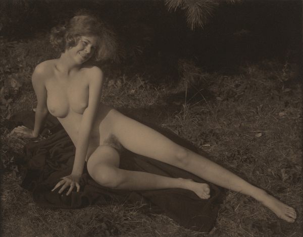 Curator: Here we have Alfred Stieglitz’s gelatin silver print, “Frances O'Brien,” from 1926. It is a nude portrait. Editor: Stark. Direct. There's a vulnerability in the upward gaze that's quite compelling. It’s as if she is offering herself up, unapologetically. Curator: Stieglitz, through his gallery "An American Place", consistently challenged societal norms. His work in photography aimed to have the same status and recognition of the paintings, therefore moving the discipline of photography into modern art discourse. Editor: It’s interesting how the material and process itself contributes to the subject's vulnerability. The grayscale, the graininess... it’s honest, revealing every contour. Curator: Absolutely. This photograph of Frances must be seen as an intervention into the male dominated perspective of women. Her directness, breaking with the classic art history representation. Her own sense of self is present. Editor: It's not just the composition, but the inherent qualities of gelatin silver print itself. The texture invites touch but its final form remains distanced and two-dimensional. Curator: Her nudity, and specifically how he depicts it, can be provocative even now. It surely was shocking for its time. A statement within a culture that constantly wants to tame feminine bodies. Editor: Right, a statement manufactured from labor, chemical, and social negotiations! And that, in itself, transforms our interaction and view on gender dynamics then, and how little things have changed, decades later. Curator: The photo participates of a bigger discourse regarding the artist representation of women. Stieglitz aimed to offer another vision for a very masculine scene. Editor: Exactly. Even today, the photograph acts as an important commentary. It allows us to inspect, question, and discuss production and representation with every viewing. Curator: Truly a seminal work with endless layers for interpretation. Editor: Agreed. Every inspection reveals not just the subject, but the labor that produces a specific type of vision of her and her time.