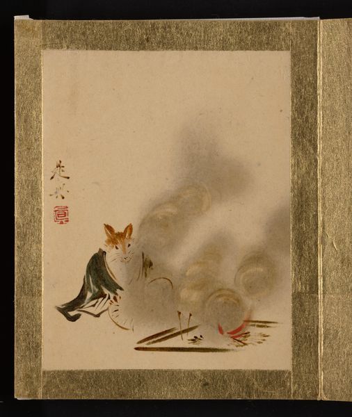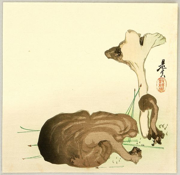 Shibata Zeshin created this painting of a bear and crabs using ink and color on paper. Zeshin lived in a time of transformation in Japan, as it transitioned from feudalism to a more open, modern society. Here, Zeshin plays with traditional Japanese painting styles, but infuses it with his unique sense of humor and observation. Look at how the bear is depicted: not as a ferocious beast, but as a curious, almost playful creature, reaching out to the tiny crabs. These crabs, on the other hand, seem to be scurrying away, unimpressed by the bear's size. Zeshin challenges the traditional hierarchical representations of animals in art. This piece isn't just about nature; it hints at a broader commentary on society, relationships, and the unexpected interactions between different beings. The painting encourages us to think about our own place within the larger world.