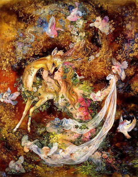 Curator: This mixed-media piece, simply titled "Untitled", is the work of Mahmoud Farshchian. It showcases a scene reminiscent of classical Persian miniature painting. Editor: It feels like entering a dream, a swirling vortex of color and form. There’s almost a psychedelic intensity in how the flora and fauna blend together. What stands out to you from a material perspective? Curator: The density of detail certainly strikes me. We see familiar elements rendered in a fantastical manner. Note, for instance, the deer encircled by flowering vines intertwined with mythical birds—motifs steeped in rich symbolism across Persian art and literature. One is compelled to consider its possible historical, religious, or social implications. The intersection of those themes, to me, is very telling. Editor: I’m intrigued by the artist’s choice of mixed media; it appears to combine traditional painting techniques with possibly applied textures. It prompts one to question how these combined processes may impact both the viewing and creation of the painting. Did he use specific kinds of paper or cloth? What was the sourcing, and how might that change or alter meaning? Curator: I wonder how much this borrows from illuminated manuscripts, considering how crucial books and the art within them were for shaping cultural narratives. Are we meant to see this scene as a story, an allegory perhaps, about power, beauty, and the cycle of life, referencing tales that would’ve been circulated for generations? Editor: That layering of history makes one wonder, too, about the labour embedded in its creation. This level of detail would demand time and focused intention—a kind of slow, deliberate making that in itself can carry significance. It becomes a kind of resistance against today's modes of artistic production and circulation. Curator: It does invite resistance, doesn't it? A refusal of the contemporary by embracing tradition. Perhaps it's pushing back against Western art historical conventions, claiming space for a different kind of aesthetic language. The orientalist reading comes into view. It raises questions about who is doing the telling, for whom, and toward what end. Editor: Yes. Examining those means and context of making and then consuming reveals a very interesting narrative, doesn’t it? It leads me to think a lot about global commerce and markets for handmade fine art and the social narratives it might contain or project. Curator: Absolutely. The piece leaves us pondering the relationship between tradition and modernity. It underscores that art isn't made within a vacuum. Everything about this particular piece compels us to situate this creation within that socio-political fabric.