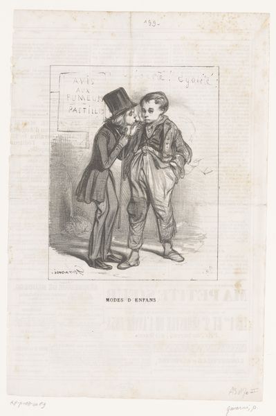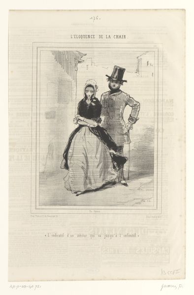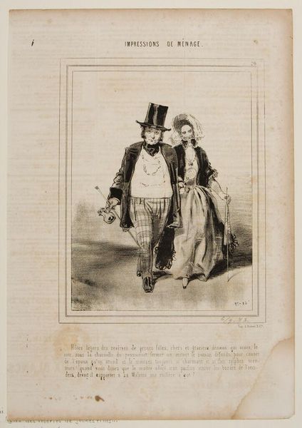 Paul Gavarni created this print, “Gevangene wijst bezoeker op de muur van zijn cel,” which translates to “Prisoner points visitor to the wall of his cell,” sometime in the 19th century. The print gives us insight into the class dynamics of Parisian society during this time. A prisoner, dressed in a lavish dressing gown, gestures dramatically to the wall of his cell. His visitor, a bourgeois gentleman in a top hat, listens intently. Gavarni was known for his satirical depictions of Parisian life, often highlighting the stark contrasts between the wealthy and the impoverished. This image captures the complex social hierarchy, where even within the confines of imprisonment, class distinctions persist. The prisoner’s theatrical pose and attire suggest a certain level of privilege, hinting at the possibility of preferential treatment. Consider how imprisonment might affect individuals differently based on their social standing. This print compels us to reflect on the intersections of class, justice, and the human condition.