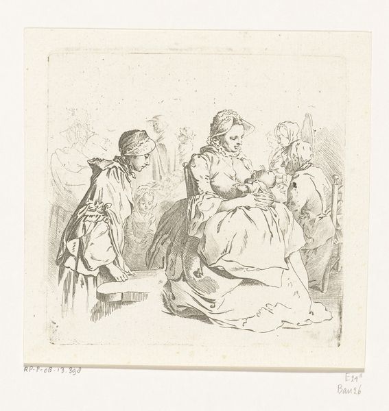Daniel Nikolaus Chodowiecki captured this scene with six ladies and an artist in his room using etching. At first glance, we see the artist in the act of creation, surrounded by onlookers. The way he is diligently capturing the likeness of the women around him is striking. The act of observation and representation has been a powerful symbol throughout art history, from the classical sculptures of idealized forms to the Renaissance portraits of powerful individuals. Consider the gaze itself: the ladies observing the artist, the artist observing them, and we, the viewers, observing the scene. This creates a complex web of looking, mirroring the human desire to understand ourselves and others. The very act of portrayal is a powerful force, engaging viewers on a deep, subconscious level. The cyclical nature of observation, representation, and interpretation echoes through time, constantly reshaping and evolving.