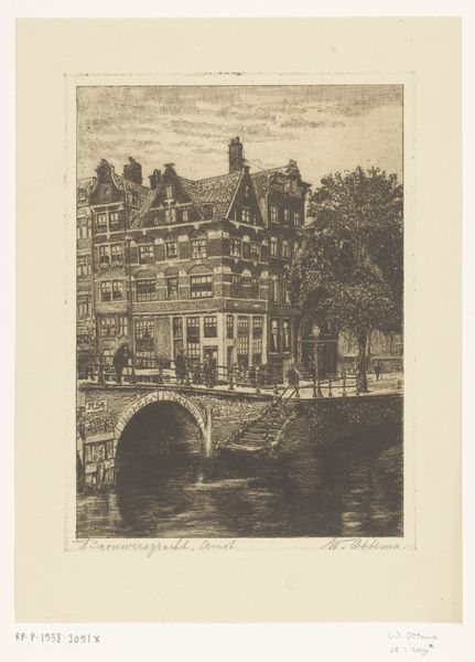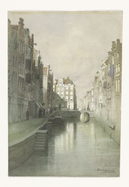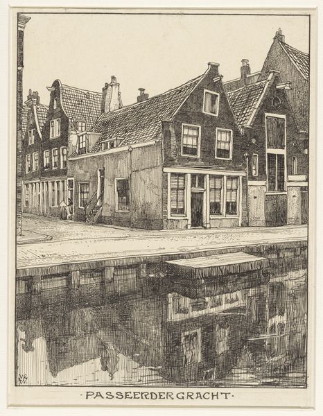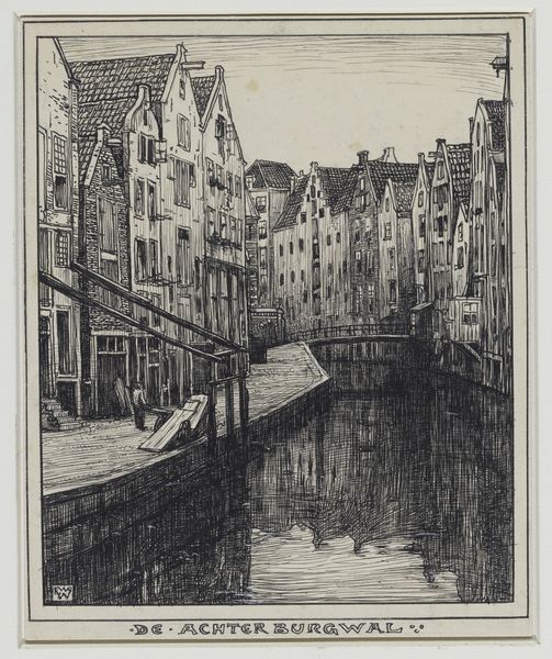 Editor: So, here we have Willem Wenckebach's "De Grimburgwal te Amsterdam," an etching done sometime between 1870 and 1926. It feels almost photorealistic, like a memory captured in meticulous detail. The reflections in the water are mesmerizing! What stands out to you in this piece? Curator: It whispers stories to me, you know? This isn't just a cityscape; it’s a conversation with the past. See how the artist uses those stark lines to define the buildings, yet the water... ah, the water is a blurry, dreamy contrast. Wenckebach isn’t just showing us the Grimburgwal, he's inviting us to *feel* it. I wonder, do you get a sense of the city's pulse, or do you feel more of its stillness? Editor: I think I feel both, like a heartbeat slowing down as you gaze at it longer. But what about the historical context? How does it relate to other art of its time? Curator: That’s a keen question. While firmly rooted in Realism, there's a poetic sensibility present that reminds me of the Dutch Golden Age masters. They, too, found the extraordinary in the everyday. The magic is how Wenckebach modernizes that approach through printmaking, accessible art for a wider audience. What if Vermeer had an etching press, you know? Something almost democratic about it. Editor: So, he's making a statement simply by choosing this subject matter and this medium? Curator: Precisely! He’s saying, "Look! Beauty is here, in the canals, the bricks, the daily lives unfolding by the water’s edge." And in doing so, perhaps nudging us to look at our own surroundings with fresh eyes. Did this insight reshape your initial response at all? Editor: Definitely. It makes me appreciate the everyday scenes around me in a different light, and value the different perspective it brought, using an accesible print form to achieve that. Curator: Right? And that, my friend, is the enduring magic of art – a constant reshaping of perspectives.