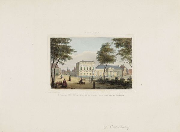 This print, "Gezicht op het Kurhaus bij Wiesbaden," was made by Ernst Grünewald, likely in the first half of the 19th century. It's an engraving, a process that involves meticulously cutting lines into a metal plate, inking it, and then pressing paper against it. The effect here is quite delicate, despite the industrial nature of printmaking itself. Note how the architectural elements of the Kurhaus and the figures populating the scene are rendered with precision, giving a sense of the ordered leisure enjoyed by the wealthy. The repetitive nature of engraving suits the subject matter: a place of leisure intended for the wealthy, who are depicted in leisurely activity. The production of such prints relied on a division of labor, from the artist to the engraver to the printer. This points to the wider context of capitalist production, in which specialized skills contributed to the creation and distribution of images like this one. Ultimately, understanding the process of engraving helps us appreciate the social and economic forces at play in creating and consuming art in the 19th century. It blurs the lines between art, craft, and industry.