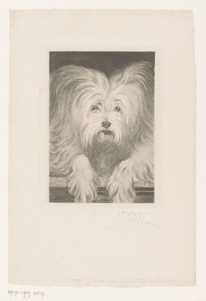 Jean Bernard created this drawing, Hond, with pen in gray on paper. Though undated, it reflects the 18th-century fascination with animals, particularly as companions. Dogs, like the one depicted, often symbolized loyalty and status within the domestic sphere. Consider how class is subtly referenced. The detailed rendering suggests a pampered pet, contrasting sharply with working animals, such as those used by women and the working class for hauling goods. The dog's gaze invites empathy, reflecting sentimental values that arose during this time. But the focus on domesticity also highlights the constraints placed upon women. The dog here offers a glimpse into the complexities of identity, history, and cultural values of Bernard’s era. It invites us to reflect on the human-animal bond and its cultural meanings.