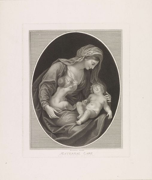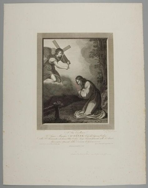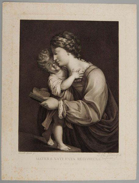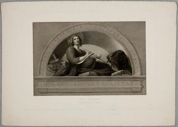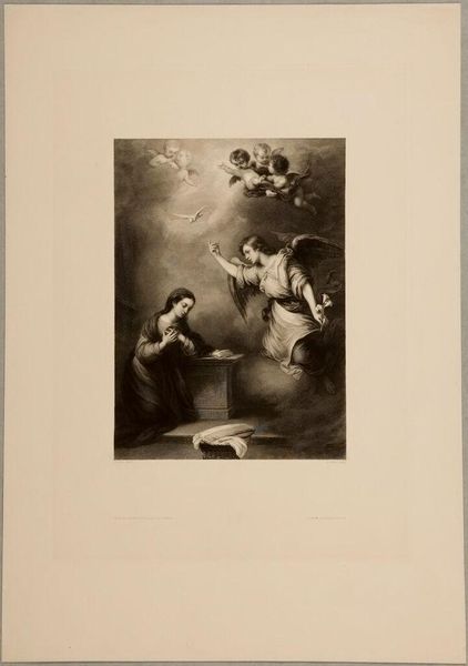 Curator: This is Frederick Girsch's "S. Dorothea," housed here at the Harvard Art Museums. What strikes you about it? Editor: It's so delicate, almost ethereal. The soft rendering of form and the muted light create a contemplative mood. Curator: Indeed. Dorothea was a fourth-century martyr. Considering the socio-political constraints placed on women's bodies and agency throughout history, Dorothea’s story of defiance resonates deeply. Editor: Absolutely. And the fruits, held by the angel, become emblems of that defiance—tangible symbols of her unwavering belief against material opposition. What do you think of the technique? Curator: The medium of engraving, chosen by Girsch, is fascinating. Each line meticulously carved speaks to a tradition that can be read through the lens of labor and skill. Editor: A perfect convergence of the ethereal and the material, wouldn’t you say? Curator: Precisely. It adds a layer of depth to our understanding of this work. Editor: I agree, thinking about how we make meaning of labor adds another layer of value.