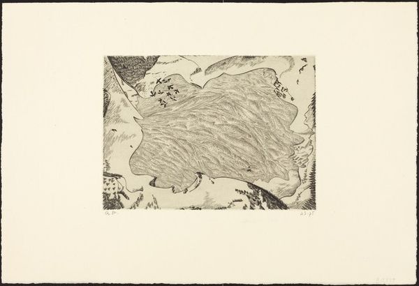 Curator: The print before us is titled "Rochemaure" by Roger Vieillard, created in 1943. It looks like a pen drawing, and perhaps a linocut print based on the lines and texture. What are your first impressions of it? Editor: It has a sort of quiet, medieval quality. I'm drawn to the details in the rendering of the village. What can you tell me about this piece? Curator: Consider the social context in which Vieillard was working: 1943, during the Second World War. This isn't simply a picturesque scene. The artist has selected specific materials, the humble pen and ink and print, a reproducible medium to convey something powerful on the process. Editor: What exactly about the "process" is important to a materialist reading of "Rochemaure"? Curator: The use of pen and ink, coupled with a readily reproducible printing technique, suggests an intent to democratize art. These materials are inexpensive and accessible, breaking away from the tradition of elite art production using costly materials available only to a few. Editor: That's interesting. So, in that line of thinking, it makes art available to a larger audience via print making, regardless of social status? Curator: Precisely. Look at the linework – precise but also achievable with basic tools. What do you make of its roughness compared to, say, etching? And what is this art object saying about that village’s importance in 1943? Editor: It really emphasizes the materiality of art production as something tied to social accessibility and the everyday. So, beyond just being aesthetically pleasing, this artwork speaks volumes about who gets to engage with art and how. Curator: Exactly. We've moved beyond admiring the scene to understanding the message Vieillard is communicating. That art isn't some unreachable commodity, but an exchange, a communication created and received by a large, diverse community.