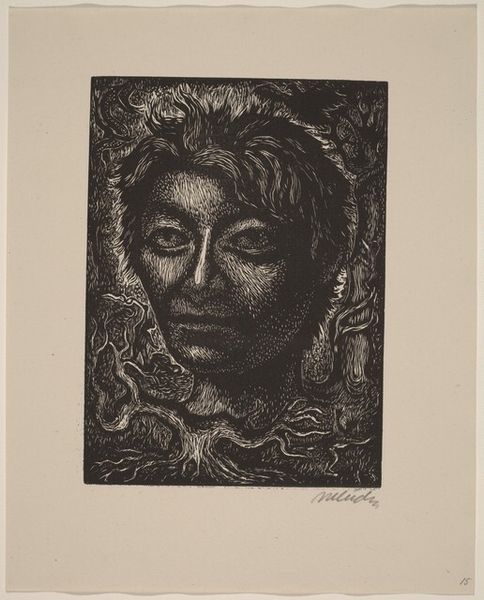 Here is your audio guide script: This is Georges Rouault’s ‘Satan II,’ and it's hard to pin down when exactly it was made or with what. Rouault’s marks are so loaded, aren't they? They have this weighty quality, like he's pushing the material around, wrestling with it. It’s like he’s saying, "Art is work, man!" I love how Rouault builds up his surfaces. There’s this real physicality to the medium. See how the grays aren’t just flat? They’re mottled, layered, like looking through smoke. And that face! It’s like he’s been chiseled out of stone, but with the raw energy of a sketch. Look closely at the eyes – they’re so intense, almost accusing. It’s like they're not just seeing, they’re judging. Rouault’s work makes me think of other artists like, maybe, Max Beckmann. It's all about wrestling with form and meaning. With art, the conversation never really ends, does it?