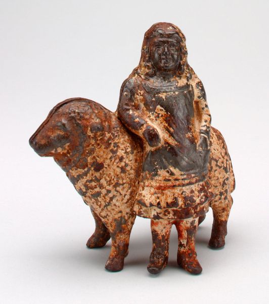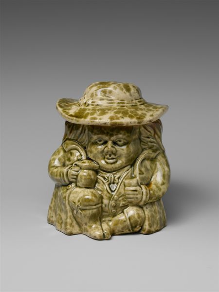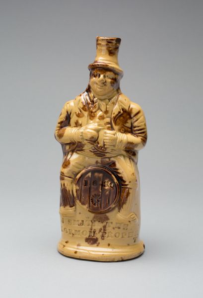 While this object was made in America in the mid 19th century, its design is inspired by Toby jugs that had been created in England since the late 18th century. The original idea of a Toby jug might have come from the character Uncle Toby in Tristam Shandy, published in England in 1760, or a popular song entitled "The Little Brown Jug," written in 1761 and dedicated to a Toby Philpot.