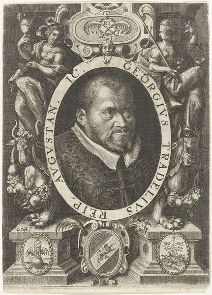 Jost Amman made this print of Sigmund Feyerabend, a prominent sixteenth-century publisher, using etching and engraving techniques. Amman worked into a metal plate, likely copper, using a combination of methods. For the fine details and tonal shading, acid would have been used to bite into the metal. The more assertive lines would have been cut directly into the plate with a tool called a burin. You can see the crispness of these engraved lines, especially in the lettering that surrounds the central portrait. The printmaking process was complex and required great skill. This was labor-intensive work. The final image would have been the result of time and knowledge from multiple people. The publisher, whose portrait we see here, was also an integral part of this commercial chain, connecting artist and audience. By considering the material and social processes behind this print, we appreciate how artistic creation and commerce were closely intertwined.