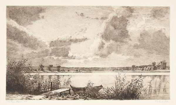 Elias Stark created this etching, Rivierlandschap met zeilschip, in the Netherlands. This image evokes the Dutch landscape and its strong ties to the water, presenting a tranquil scene of everyday life. We see a sailboat gently moving along the river, with a suggestion of a town in the distance, complete with a church spire and windmill, traditional symbols of the Dutch countryside. It’s useful to remember that the Dutch landscape isn’t simply natural; it’s the product of centuries of human intervention. Extensive networks of canals and dikes are crucial for land management and transportation. Stark's river scene therefore subtly acknowledges the way the Dutch have shaped their environment, reflecting the nation's historical relationship with the sea. Further research into Stark's life and the artistic trends of his time, using sources such as exhibition reviews, personal letters, and municipal records can contextualize this piece within the broader cultural landscape of the Netherlands.