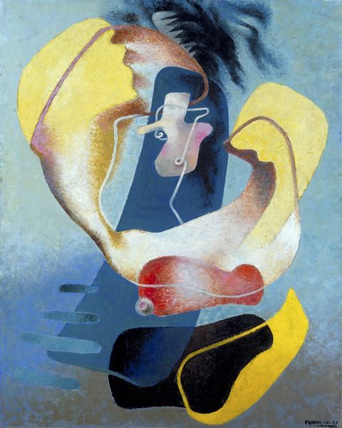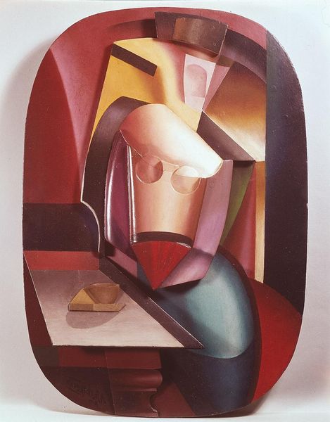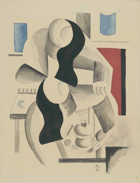 Editor: This is Josef Capek's 1921 painting "Koupel nohou," or "Foot Bath," rendered in oil. The geometric forms create a stylized nude, a little unsettling, honestly. How do you interpret this work, especially within its historical context? Curator: The "unsettling" feeling you describe is key. Capek, deeply influenced by Cubism and Art Nouveau, painted this shortly after World War I. The fragmented figure can be seen as reflecting a fractured society, a world grappling with trauma and uncertainty. The public's reception of these stark, geometric nudes was often polarized; how do you think it challenged the prevailing academic traditions? Editor: I can imagine! It's such a departure from traditional idealized nudes. The lack of naturalism feels almost like a rejection of pre-war aesthetics. Was Capek deliberately making a political statement? Curator: Not explicitly, but his work undoubtedly engaged with the socio-political climate. Consider the rise of avant-garde movements after the war. They aimed to dismantle old power structures, including those within the art world. This "Foot Bath" participated in a broader cultural conversation, questioning established norms and advocating for new ways of seeing and representing the human form. Does this make you reconsider the geometric forms? Editor: It does. I now see them as more than just an aesthetic choice; they're part of a larger rebellion against tradition. Seeing how social and political upheaval influenced art so directly is fascinating. Curator: Exactly. And the location this was exhibited also influenced it - considering it would be exhibited, and the public had access - and so an intimate moment in this fashion has a greater public role. Now, knowing all of that, would you say your initial interpretation has evolved? Editor: Absolutely. I see it now as a powerful reflection of a world in transition, not just a strange nude! It’s a real testament to art's role in reflecting and shaping society.