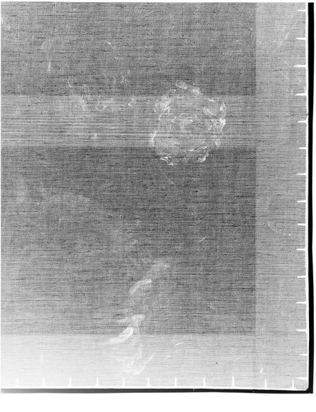 Curator: This is an x-radiograph of "Cotton Merchants in New Orleans" by Edgar Degas. It gives us a look beneath the surface of the painting. Editor: My first impression is one of ghostly layers, almost like a photographic negative. It's fascinating to see the structure beneath the visible image. Curator: Absolutely. Radiography reveals the artist's process: underpainting, corrections, and the physical properties of the materials used. It provides a scientific perspective on art history. Editor: And it reminds us of the complex social history embedded in the cotton industry. The painting itself, and this x-ray, speak to power, labor, and the legacies of colonialism. Curator: Indeed, understanding the cultural and economic context of cotton production in 19th-century New Orleans is crucial to interpreting Degas' work. Editor: Ultimately, the x-ray is an important tool for interrogating not just artistic process, but the layers of history and power within the artwork itself. Curator: Yes, it allows us to delve deeper into the painting’s many stories. Editor: It provides an alternative way to examine the artwork, allowing us to see it from all angles.