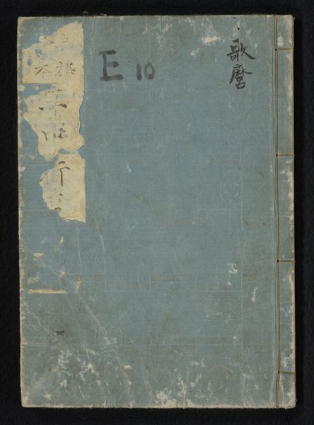 Curator: Well, isn't that a beautiful book cover. Something about its imperfections just draws you in. Editor: It really does! It’s funny; the very first thing I notice is the faded blue of the paper – it's so soft, almost like looking at the sky just before dusk. What’s its story? Curator: This is "Geïllustreerd verslag van een reis naar het westen", or, Illustrated Account of a Journey to the West. It’s a print from 1803, made with ink on paper by Shiba Kōkan. Editor: Oh, Shiba Kōkan, fascinating! Knowing his influence, does this speak to broader artistic and intellectual currents? That calligraphic title adds an interesting formal element, too. It sort of anchors that hazy, almost dreamlike expanse of blue. Curator: Exactly. Kōkan was deeply influenced by Western art and science. Here we can see Eastern and Western styles blended— calligraphic text alongside Western art theories. He used Japanese artistic forms to create the visual information in his work about "the West." And in its original cultural context, images such as this opened new channels of imagination and exchange for their viewers, conveying what places or objects could look like with only a book cover as the point of reference. It makes the cover a talisman, almost, for accessing other worlds of thought. Editor: You're right; it's as though the journey began long before you even opened it. All that implied space…it activates something in the imagination, some yearning. Even knowing it’s paper, I just want to touch it! There’s a sensory memory evoked here somehow. Curator: I agree completely. That yearning hints at a timelessness. The images or ideas contained inside gained additional levels of power for their viewers, since it takes a great deal of cultural energy and resources to print this particular set of images into one bound collection of printed pages. That type of object inspires a certain devotion, almost like sacred books from centuries before, or religious texts that carried knowledge from place to place in eras when such knowledge was much more rare to access and transfer from mind to mind, place to place. Editor: Almost a feeling of intimacy—like holding centuries of stories and cultural memory in your hands. Thanks for sharing your knowledge! Curator: Thank you; you gave me an appreciation for the subtle allure of the materiality itself.