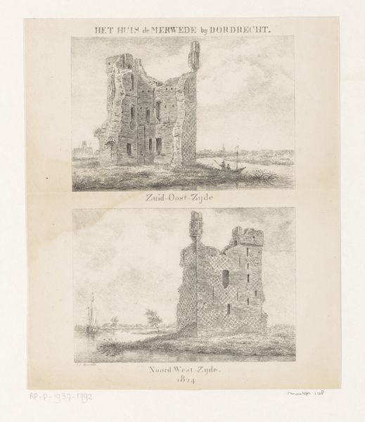 Hendrik Spilman created these two images of the Ruin of Huis ter Kleef in Haarlem in 1740, using etching and engraving. The fine lines, the textures of the stonework, and the atmospheric perspective are all achieved through meticulous work with a sharp burin. The image is a testament to the engraver's skill, capable of capturing the subtleties of light and shadow, and the details of the ruined architecture. This was not only an artistic exercise, but also a commercial one, as prints like these were often sold as souvenirs or historical records. Consider the labor involved in creating such a detailed image, the hours spent meticulously carving lines into a metal plate. This artisan skill highlights the convergence of craft and commerce in 18th-century printmaking. Spilman's work reminds us to value not only the aesthetic qualities of the image, but the labor, skill, and social context that brought it into being.
