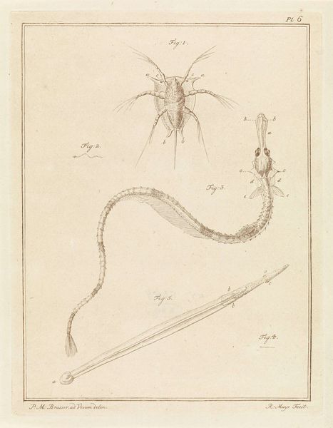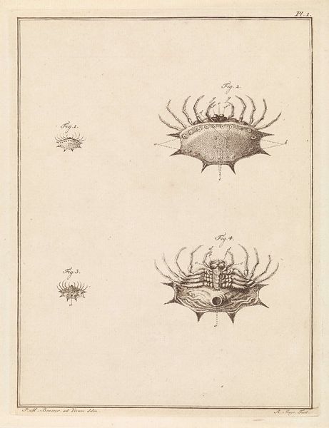Editor: Here we have "Strandkrab en een pijlkrabbensoort" or "Shore crab and an arrow crab species," a 1778 ink drawing by Robbert Muys, currently at the Rijksmuseum. There's something stark and almost scientific about this precise rendering. How should we interpret this? Curator: This piece speaks volumes about the intersection of science, art, and colonialism in the 18th century. Consider that detailed illustrations like these were vital for cataloging and understanding the natural world, driven by European expansion and resource extraction. These weren't simply objective representations; they participated in a system of knowledge production that often justified exploitation. How does this influence your understanding of its aesthetic choices? Editor: It does shift my perspective. Seeing the drawing as part of a larger system makes it feel less like a neutral study and more like…an instrument of power, I suppose? Curator: Precisely. The seemingly objective gaze carries the weight of a colonial worldview. The very act of classifying and displaying these creatures naturalizes a particular hierarchy, where the European observer is positioned as the knowing subject. Does understanding the purpose behind this affect your initial reaction? Editor: Absolutely. I was focused on the visual precision but now realize the drawing’s precision also contributes to a broader agenda of control and knowledge acquisition during the Enlightenment. It's unsettling. Curator: And important to recognize. Consider the role of figures like Muys, facilitating this data-gathering project with a European worldview. Editor: I guess it's easy to overlook those kinds of social implications when looking at what seems like a simple drawing. Curator: Context, in this case, forces us to reflect. It's a powerful reminder that even seemingly objective images can be deeply embedded in social, political, and economic power structures. Editor: Definitely gave me a lot to think about.