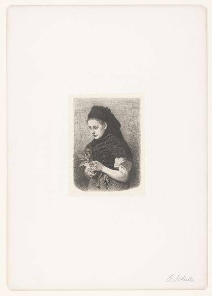Curator: This is Peter Ilsted’s 1893 pen drawing, "Woman Cleaning Mushrooms at a Table", which is currently held at the Rijksmuseum. What’s your immediate take on it? Editor: A feeling of hushed domesticity, almost religious in its intensity. The light falls on her like a halo, yet it's focused entirely on this mundane task. It gives the cleaning of mushrooms a significance I can't quite place. Curator: Fascinating, considering how meticulously the cross-hatching and linework simulate the light interacting with fabric and the matte surface of that earthenware jug. It highlights how even the simplest tools shape domestic labor. What about the mushroom motif itself, anything there? Editor: Mushrooms are so primal. Symbols of both bounty and decay, transformation, even. Think of their connection to folklore, to unseen worlds. A woman cleaning them… it suggests preparation, a ritual of nurture, but also a confrontation with something ephemeral. Are these wild mushrooms gathered, or cultivated? This is of great importance here, which determines the relation with nature! Curator: Right! Consider Ilsted's artistic environment in late 19th century Denmark. We are moving away from Romanticism's wild nature, closer to a scientific positivism where cultivated products and domestic labor became increasingly significant. The mushrooms are a mere still life element among a setting and the human, that give them their status, and, so to say, 'soul'. Editor: So, a deliberate placement, intended to evoke a sense of grounded, quiet worth through familiar actions? It does make me consider the deeper meaning we ascribe to such quiet scenes, doesn't it? Even more specifically if you refer it to Northern Renaissance's themes. Curator: Exactly, and it makes me consider our act of consumption today; every product has labor hidden inside, in every place around the world. That connection may be less obvious today than in 1893 Denmark, however! Editor: Looking at the piece now, I find myself drawn back to the initial sense of peace but layered with an understanding of those connections. Thanks for clarifying those elements for me! Curator: And thanks to you I got to see the work in new light! Looking for meaning through shapes and figures helps reveal the real meaning behind this artpiece.