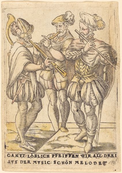 Urs Graf created "A Soldier Walking with a Camp Follower" using pen and black ink on paper. Graf, a Swiss mercenary and printmaker, lived during a period of significant social upheaval, including the Reformation and the rise of mercenary armies. This drawing captures the lives of soldiers and their companions, women who traveled with military camps, often providing essential services. The pair strides forward; the soldier, laden with weapons, glances at the woman beside him. Her arm is looped through his; she carries a flask. These camp followers, often marginalized, faced harsh conditions and societal judgment. Urs Graf, who lived a tumultuous life as a mercenary, often depicted the lives of soldiers with an element of realism but also empathy. The landscape in the background seems indifferent to the human drama unfolding in the foreground. The drawing serves not only as a record but also as a commentary on gender roles and class distinctions. It invites us to consider the lives of those on the fringes of society during times of conflict.