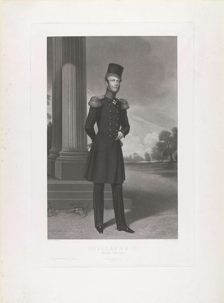 This is a portrait of Willem II, King of the Netherlands. The artwork is an engraving featuring the king in military attire, adorned with symbolic regalia. Note the prominent Maltese Cross suspended from his neck. This emblem, historically associated with the Knights of Malta, suggests a lineage of valor and Christian duty. Its reappearance throughout history, from medieval banners to modern-day awards, signifies honor and bravery. This cross is not merely decorative; it taps into a deep well of collective memory, evoking a subconscious connection to past heroes and ideals. Observe how the artist used this potent symbol to convey a sense of regal authority. Such symbols possess a cyclical power. The resonance of these symbols engages viewers, stirring emotions linked to historical narratives of heroism, duty, and the enduring quest for order.