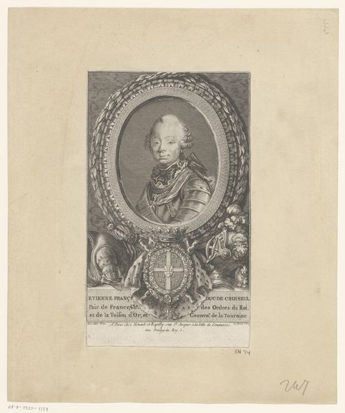 Editor: So, here we have Ambrosius Gabler's "Portrait of Johann Dreykorn," an engraving from 1784. It feels so formal, and very much of its time. What social narratives are unfolding in this portrait, would you say? Curator: What strikes me first is the carefully constructed image of power and intellect. Engravings like these served as crucial tools in shaping public perception and bolstering social status. The inclusion of books in the background positions Dreykorn as a man of learning, subtly reinforcing his authority. How do you think the institutional context played a role in its making? Editor: So you're saying the printing press, as an institution, actually shaped the visual language here? The sitter *needed* to project those traits for this kind of artwork to work? Curator: Precisely. The Baroque aesthetic, even in portraiture, became a performance. Think about who controlled access to the printing press, who commissioned these portraits. The sitter is quite literally framed – contained by ivy leaves, but simultaneously legitimized and elevated. Editor: That's interesting. The portrait now feels like an assertion, a carefully crafted public statement as much as a likeness. Did most people have access to artworks such as this, or did social class factor heavily into visibility? Curator: It wasn't mass media as we know it. This would be disseminated amongst a specific intellectual and social circle, reinforcing existing power dynamics and constructing a historical record skewed towards the elite. We have to be careful about what stories these images tell, and more importantly, what voices remain unheard. What did Dreykorn contribute, actually? That is, what's *his* story, as distinct from this image? Editor: Absolutely. Thinking about it as a piece of political messaging really opens it up. It moves it away from being a 'likeness' into being another way elites communicated *with* elites. Curator: And that understanding re-shapes how we see art history, focusing our attention on power and purpose behind every work of art.