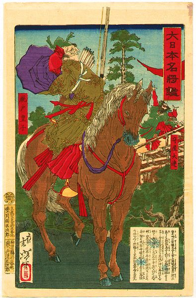 Utagawa Yoshitomi created this woodblock print titled, “Russian Horseman," now housed in the Metropolitan Museum of Art in New York. Notice how Yoshitomi employs a flat perspective, typical of ukiyo-e prints. This technique compresses depth, emphasizing the surface and decorative qualities of the artwork. The horse and rider are rendered with bold outlines and flat planes of color, reducing the figures to simplified forms. The muted palette enhances the print’s graphic impact. The composition is divided into distinct zones of text and image which work together to balance the visual field. Yoshitomi destabilizes traditional Japanese representations by incorporating foreign subject matter and Western-style military attire. By blending Japanese printmaking techniques with depictions of Russian figures, he creates a hybrid visual language that reflects Japan’s engagement with global modernity. Consider how the formal elements of this print challenge fixed meanings and celebrate the dynamic interplay of artistic and cultural influences.