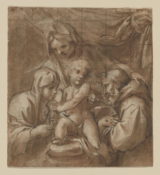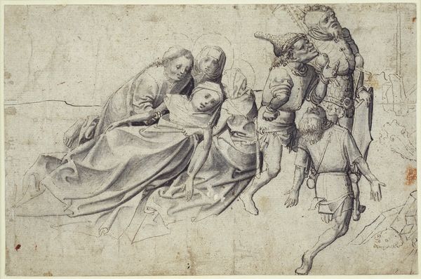 Jean Jacques Lagrenée created this print of "The Nativity" using etching, a printmaking technique with a long history. It involves applying acid to a metal plate to create the image, which is then inked and printed. The artist would have covered a metal plate with a waxy, acid-resistant coating. Then, using a sharp needle, he would carefully scratch away the coating, exposing the metal underneath. The plate is then submerged in acid, which bites into the exposed lines, creating grooves. The longer the plate sits in the acid, the deeper the lines become, influencing the darkness of the printed lines. After the plate is prepared, ink is applied and then wiped off the surface, leaving ink only in the etched lines. Finally, the plate is pressed onto paper, transferring the ink and creating the print. The dense arrangement of lines speaks to the great amount of work involved in the etching process. By understanding the labor and skill involved in etching, we can appreciate its place in the broader world of creative practices, moving beyond traditional distinctions between fine art and craft.