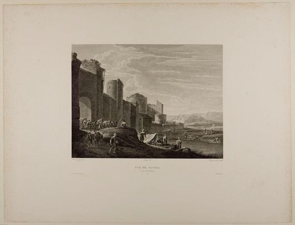 Curator: This is Robert Wallis's "Brighton Chain Pier," a print housed at the Harvard Art Museums. The pier itself creates such a striking horizontal line across the composition. Editor: It certainly does. The monochrome print lends a certain gravitas, and yet the scene itself, with boats and figures, suggests leisure and commerce. I wonder about class and access here. Curator: Absolutely. The pier was a marvel of engineering, but also a locus of social activity. Consider the labor involved in its construction, the iron chains forged, the wood harvested. Editor: And who had access to this leisure? How did the pier shape Brighton's identity? This print, as a commodity itself, circulates ideas about progress, tourism, and perhaps even empire. Curator: The printmaking process allowed for widespread distribution, shaping perceptions of Brighton far beyond its shores. It democratized the image, if not the experience, of the pier. Editor: Yes, and it invites us to think critically about the narratives we construct around progress. It's more than a pretty pier, it is a statement of intent.