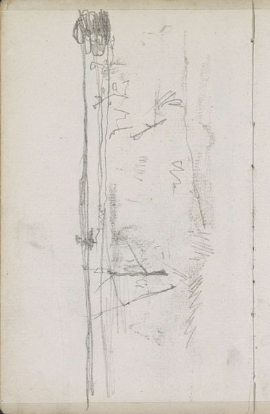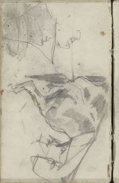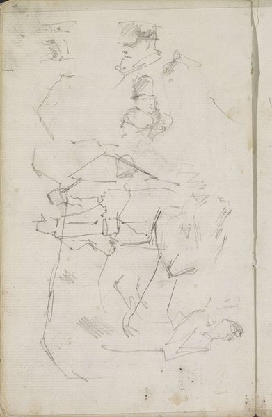 Curator: Oh, my first thought? Controlled chaos. Editor: Here we have "Groepen figuren en een paard-en-wagen," a graphite drawing by George Hendrik Breitner, dating from around 1880 to 1882. It’s currently part of the Rijksmuseum collection. What draws you to describe it that way? Curator: There’s something frenetic, urgent even, about these lines. Like catching snippets of a story. Quick, before it vanishes. A memory trying to stay afloat. It looks like the artist's sketchbook—fleeting, ethereal thoughts—something only intended for his eyes only. Editor: Exactly! Breitner was known for capturing everyday street scenes, particularly in Amsterdam. This drawing, in its sketchy quality, provides insight into his working process, how he observed and documented the bustling urban environment around him. Consider the horse-drawn cart; it seems to represent industrializing cities, filled with chaos, and in flux. Curator: It also feels very personal, almost like eavesdropping on a conversation, but in image form. I mean, it’s rough, isn't it? Nothing is nailed down. But perhaps that is its point. Editor: It’s definitely a looser style, embracing a certain immediacy reminiscent of Impressionism. And its accessibility cannot be dismissed! Drawings, due to their private nature, weren’t meant for wider audiences, yet institutions and their political role brought them out to us, reshuffling public roles in art. What might have been private becomes a public thing. Curator: Absolutely, you're giving us the artist's initial gut reaction. The germ of an idea. But there's also this loneliness. Are these figures separate entities or something bigger? Editor: Well, perhaps that isolation reflects Breitner's relationship to the society he depicts. While he found beauty and inspiration in urban life, there's also often a sense of detachment in his work, as if he were always an observer. I can imagine a bit of cynicism given what we know about the artist! Curator: Hmmm…perhaps you are on to something here! Ultimately, though, what fascinates me is the open-endedness. What would this work eventually become? It's like peeking into a chrysalis. Editor: Yes, it reveals so much more than perhaps the finished artwork allows, an urban study, if you will. A historical artefact, revealing industrial Amsterdam in flux. Curator: The drawing carries with it an honesty, unburdened from expectation, truly liberating! Editor: Precisely, it encapsulates the vibrancy and immediacy of Breitner's perspective during the 1880s!