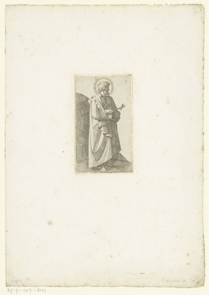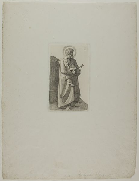 Curator: Robert Cooper's 1816 engraving, "Meisje met een leesplankje met het alfabet," or "Girl with a Reading Board with the Alphabet" as we'd say in English, at the Rijksmuseum, captures a young learner and her, well, reading board! Editor: Oh, she's just adorable. The piece has a certain… seriousness? For something so simple. Like, a heavy weight in potential resting on those tiny shoulders, with that almost solemn expression. Curator: Cooper, working in the Neoclassical style, really isolates her with this focused light. The composition is strikingly balanced; her figure almost symmetrical and framed against the backdrop, drawing the eye to her face and that board. He transforms genre-painting in an artwork, simple, neat, yet carrying its powerful message. Editor: Absolutely. And that contrast, the bright light illuminating the girl, with the shadowed figures lurking behind… There's this powerful juxtaposition of clarity and ambiguity. It begs so many questions, right? Is it protection, a commentary on her situation, is there someone watching, what is her story, her background? Curator: The simplicity allows the texture of the engraving itself to take centre stage. Note how Cooper varies the fineness of his lines to simulate tonal shifts – creating the soft fall of drapery here, the sheen of skin there. The materiality, the weight of that board with its letters is crucial. Editor: The letterboard seems massive compared to her, doesn't it? It sort of hits you in the face: learning to read. Curator: Learning – being empowered. The genre painting, through portraiture, gains authority in that message. Think about the socio-political weight then. Literacy, class, gender… layers upon layers are emerging from such an unassuming image. Editor: The fact that it's a print too is not a bad addition. Like an early means of mass literacy... Curator: Exactly! Reproduction enabled wider distribution of knowledge. That changes everything. Editor: It all comes together, right? I started by seeing it as cute, you quickly made it clear to me it's about agency, it's about societal shifts – damn! That serious look is well placed on the girl! Curator: That initial cuteness softens a message which otherwise might be overtly didactic; the artist gets away with, or gets right, in expressing the possibilities within a single, very determined, very beautiful gaze.