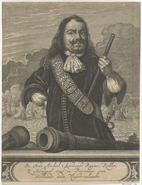 Franciscus Bernardus Waanders created this print of Tjerck Hiddes de Vries in the nineteenth century. Observe how the commander firmly holds a staff in his right hand. In antiquity, the staff was a symbol of power, authority, and guidance. We see a similar motif in classical sculptures of emperors, or even religious figures such as Moses, using a staff to symbolize leadership and divine authority. Consider its evolution: from a simple tool for guidance to a potent emblem of command. Note also the naval battle raging in the background. This detail isn't merely decorative; it intensifies the emotional impact of the portrait. The turbulent scene evokes a sense of danger and urgency, engaging viewers on a visceral level. Symbols have a non-linear progression: they resurface, evolve, and acquire new meanings across different times.