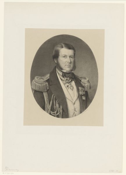 Editor: Here we have an oval portrait of Leopold II, Grand Duke of Tuscany, an engraving by Paolo Toschi, made sometime between 1828 and 1838. I’m struck by how the stark, clean lines convey such a sense of formality and authority. What's your take on this piece? Curator: Well, what jumps out at me is the political statement embedded in such a seemingly straightforward portrait. Consider the context: it was created during a period of immense social upheaval, yet we see Leopold II presented in a style that evokes stability and tradition through neoclassical conventions. Editor: That makes sense. So, you're saying the artistic choices—the formal pose, the medium—are all carefully constructed to project a certain image of the Grand Duke? Curator: Precisely. The engraving medium itself, as a readily reproducible form, allowed for wide dissemination of this image. Think about that – it was a carefully controlled message aimed at solidifying his image amongst the population and perhaps beyond. What details reinforce that in your eyes? Editor: The embellishments: his sash, medals. Those items showcase prestige but also wealth and class. Are you suggesting this artwork’s formal and rigid structure further portrays a strict control? Curator: Yes, that rigidity you noticed—it speaks volumes. These visual cues were deployed to portray him as a leader ordained, fit to govern despite a climate of rising democratic sentiments and revolutionary undertones bubbling across Europe. Editor: It's amazing how much historical narrative can be packed into a portrait like this. I hadn't considered the role of reproducibility in shaping public perception. Curator: Exactly! It makes you realize the immense power images held and continue to hold in constructing and perpetuating narratives around leadership and authority. Always consider: who commissioned this and for what purpose? Editor: I definitely see portraiture in a different light now. Thanks!