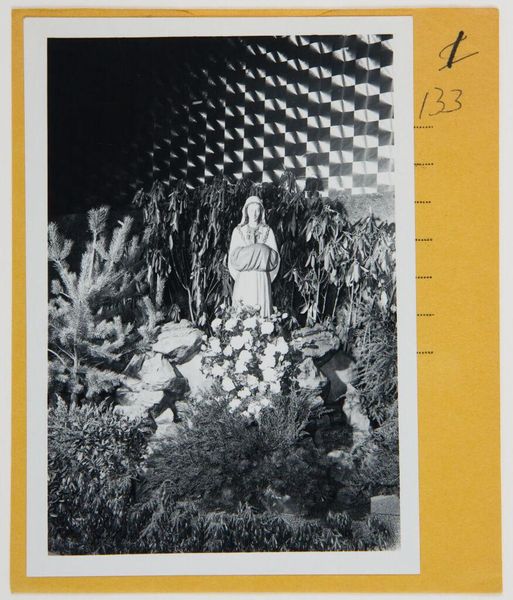 This photograph, by Robert Burian, shows a woman in a garden setting, and the work’s power lies in its skillful manipulation of light and shadow. The high contrast of the black and white print emphasizes the textures of the woman’s dress against the surrounding foliage, drawing our eye to the way the image was captured. The choice of black and white film eliminates color distractions, directing our attention to the tonal range and compositional arrangement, and to the relationship between figure and the constructed garden. The photograph’s success is a testament to Burian’s technical skills. Consider the precision needed to develop this image in the darkroom. Through careful control of exposure and development times, Burian imbued this print with clarity and depth, transforming an everyday scene into a moment of artistic expression. Paying attention to the making of this photograph allows us to appreciate the skill and vision of the photographer.