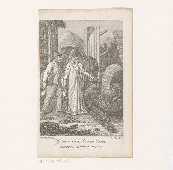 Constantin Hansen created this illustration for Svend Grundtvig's "Marsk Stig: Dansk Folkevise Fra 13de Aarhundrede" in 1861. Hansen visualizes a medieval Danish folk song, a genre revived during the 19th century's wave of nationalism. The print shows Marsk Stig, a Danish nobleman, departing from his wife or lover. The scene is heavy with dramatic tension: a man, armed and cloaked, leaving a woman at the foot of a stone tower, soldiers behind him. Hansen uses the visual codes of the day to evoke a heroic, romantic past, a period of strong national identity. Interest in folk songs was not simply nostalgic. In the context of 19th century Denmark, such imagery served to consolidate a sense of national identity and a shared cultural heritage. Understanding Hansen's work requires looking into the history of Danish nationalism and its relationship to folk culture. Investigating archives of popular song and the history of folklore societies, we can better understand how art played a role in shaping a collective cultural identity.