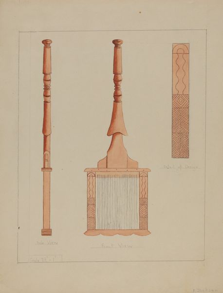 This watercolor drawing of a newel post was made by an anonymous artist and it presents a meditation on the act of seeing, thinking, and experiencing the world. Look at the way the artist uses thin washes to build up the form, and how the color palette, limited to variations of brown, creates a sense of warmth and depth. The lines are precise, but there's also a delicacy to the touch, a lightness that keeps it from feeling too rigid. Notice the subtle shadows and highlights that give the wood its volume. It's like a conversation between light and shadow, isn't it? The way the artist paid attention to detail reminds me of Agnes Martin, who found beauty in the simplest of forms. It is a reminder that art doesn't always have to shout to be heard, sometimes the quietest voices have the most to say.