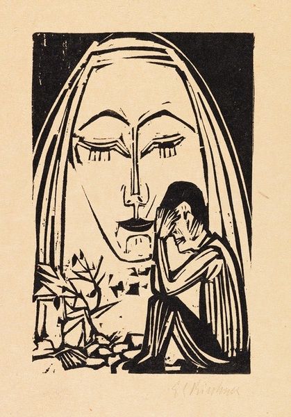 Editor: Here we have Eric Gill's "Madonna and Child," a small wood engraving. The stark contrast creates such a powerful image, but what strikes me most is the labor-intensive nature of the printmaking process. What do you make of this piece? Curator: Notice how Gill's engagement with the physical demands of wood engraving directly informs the final image. He elevates craft. Can we consider how this challenges traditional art hierarchies? Editor: That's interesting. So, the medium itself becomes part of the message, highlighting the value of skilled labor? Curator: Precisely. We see the means of production embedded within the aesthetic experience, prompting us to rethink artistic value. Editor: I never thought of it that way before. It makes you appreciate the work and skill involved. Curator: And the broader social context of labor and materiality surrounding its creation. Food for thought!
