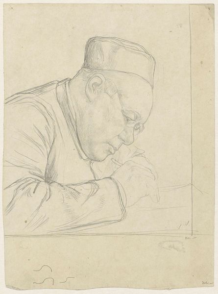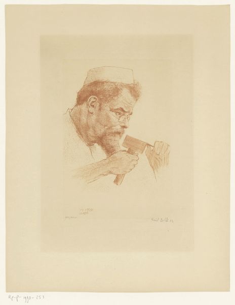 Jan Veth rendered this portrait of Herman Schaepman in printmaking technique. The dominant visual symbol is the act of writing itself, an ancient motif representing knowledge, power, and memory. Consider the image of scribes in ancient Egypt, diligently recording history and divine decrees. The act of writing elevates Schaepman, imbuing him with an aura of authority and wisdom. This echoes through the ages, resurfacing in medieval depictions of evangelists penning the Gospels, each stroke laden with spiritual significance. Observe how the pen, a simple tool, becomes an extension of the self, channeling thoughts and ideas into tangible form. This reflects our deep, subconscious desire to leave a mark on the world, to transcend our mortal existence through the written word. The intense concentration etched on Schaepman's face speaks volumes about the psychological weight of this act, engaging viewers on a deeply personal level. Like the serpent biting its own tail, the written word is a powerful force, endlessly resurfacing and evolving, constantly renewed.