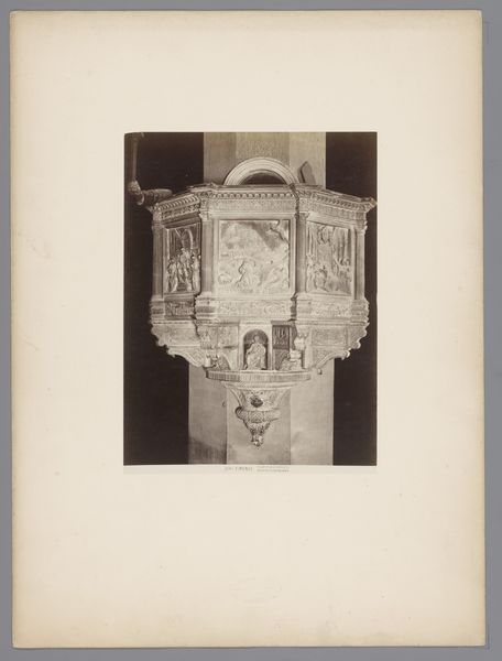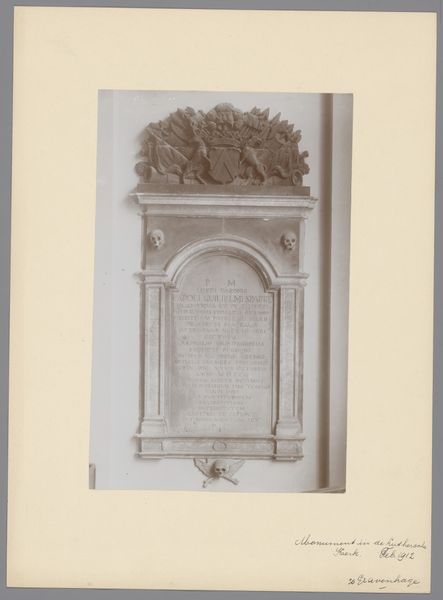 This photograph captures the Grafmonument van Frederika van Ittersum in the Grote of Schildkerk te Rijssen. The image is dominated by the monument's elaborate structure. The eye is immediately drawn to the intricate details of the monument’s design, where carved stonework frames a central inscription. The photograph plays with depth and texture, emphasizing the monument’s three-dimensionality against the flat church wall. Above the inscription, ornate carvings spiral upwards, creating a visual rhythm that culminates in a decorative crest. The linear elements of the inscription contrast with the fluid, organic shapes of the surrounding ornamentation. This interplay between order and fluidity reflects a broader cultural dialogue between classical restraint and baroque exuberance. The monument itself, through its careful arrangement of form and text, serves as a semiotic marker, encoding social status and commemoration within the architectural space of the church.