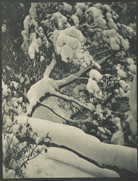 Editor: We’re looking at Eiichiro Sakata's "Hawaii Island," a black and white photograph. It's an image that feels dense and layered, almost overwhelming. What can you tell me about it? Curator: Focusing on materiality, consider the labor of both Sakata and the land itself in producing this image. The stark contrast between the moss-covered branches suggests a specific, perhaps even harsh, environment. How does this relationship between natural material and photographic process inform your interpretation? Editor: It makes me think about how the photograph itself is an object, reflecting the real world but also transforming it through the printing process. It's almost like a material echo. Thanks for the insights! Curator: Indeed! This work compels us to reflect on the means of production, and the reciprocal relationship between the artist, the environment, and the final tangible form.