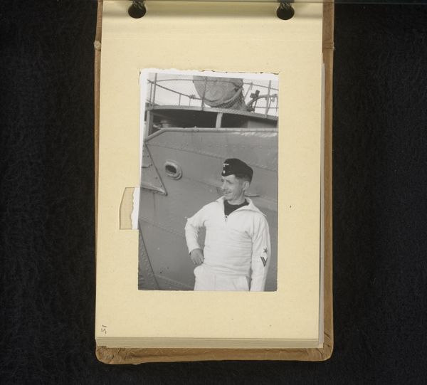 Curator: Looking at this gelatin-silver print, entitled "Portret," the photograph, created between 1940 and 1943, offers a captivating snapshot. It is currently held in the Rijksmuseum collection. Editor: He has an almost disarming smile for someone in uniform during that period, doesn't he? There’s a stark contrast between his cheerful expression and the gravitas typically associated with wartime imagery. Curator: Indeed. The materiality of this object, the gelatin silver print, is itself significant. Think about the social context, during the height of the Second World War. Photography’s role in propaganda and documentation was paramount, blurring lines between objective record and political tool. This being a gelatin-silver print suggests a certain accessibility in production. Editor: Absolutely. I’m immediately drawn to the role that this photograph played in its own time, especially as part of a larger visual culture consumed and understood by a specific audience. Considering the man’s uniform, one ponders where this image was shown, for what purposes, and what its emotional impact on viewers would have been. Curator: Precisely. One also has to think of the labor involved in producing these prints en masse. Photography by then had entered mass culture, transforming not just artistic expression but the very nature of image consumption. The social impact of this new visual language... Editor: Exactly! I’m also struck by the photograph's institutional setting, sitting in a museum today. Its presence reshapes its original context. No longer a simple portrait or a piece of war documentation, it now acts as a complex signifier, loaded with meaning. It makes us consider the choices that lead to its preservation and exhibition. Curator: And now, our contemporary perspective grants a meta-awareness, observing our observation...it shows how perceptions of this era’s materials are being transformed into art objects. Editor: In the end, considering this man's image within both its original era and the present moment provides insight on history, and offers profound food for thought. Curator: Quite. It highlights the layered nature of objects viewed across time.