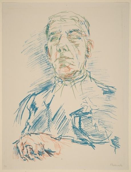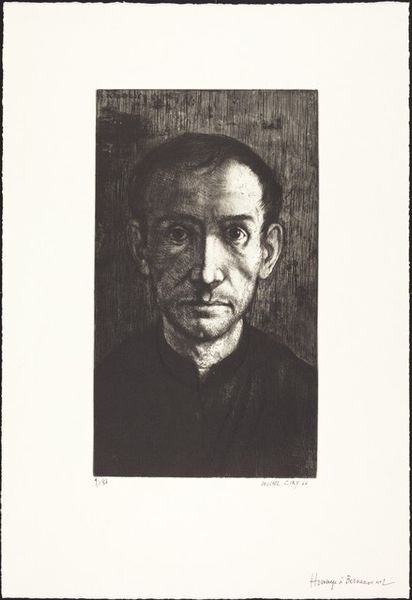 Editor: So, this is George Bellows' portrait of Eugene Speicher. It seems to be a lithograph. I'm struck by the raw quality of the lines. What do you make of this piece? Curator: Considering Bellows' background, this lithograph speaks volumes about the democratizing nature of printmaking. He captured Speicher, yet the real story lies in the process: the stone, the labor, the accessibility of the image to a wider audience. How does this challenge traditional portraiture, focusing on elite patronage? Editor: That's fascinating! I hadn't considered the social implications of the medium itself. Curator: Exactly! It forces us to rethink not just the subject, but the very means of production. It's about material conditions shaping artistic expression. Editor: Thanks, that gives me a lot to consider. Curator: Indeed, the materiality redefines the art itself.