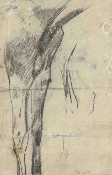 Curator: Here we have "Torso of a Satyr-Like Man with Raised Arm," a drawing attributed to Giovanni Battista Piranesi, created sometime between 1745 and 1750. Editor: My initial impression is one of struggle. The figure's musculature is so pronounced, almost grotesque, yet he seems burdened, his posture suggesting a heavy weight or resistance. Curator: Piranesi, primarily known for his etchings of Roman architecture and cityscapes, frequently explored themes of power, decay, and the passage of time. In his time period there was an interest to bring a fresh understanding of ancient Rome, though, of course, seen with eighteenth century eyes and with the social understanding of that era. Editor: I'm intrigued by the symbolism of the satyr. It’s a figure rooted in classical antiquity, representing unrestrained hedonism, a connection to nature, and a challenging of social norms. That raised arm – is it a gesture of defiance, a plea, or even a moment of ecstatic dance? I’m especially captured by the head, where an expression or something like anger meets a deep feeling. The fact it is not complete is particularly provocative. Curator: Considering Piranesi’s wider body of work, that social interpretation makes sense. During the 18th century the social position of certain classes was rising so representing this man this way could represent an upset of social norms or an acceptance of freedom from social pressures. Editor: Precisely. And within the conventions of Baroque figuration that form this drawing's style, we expect a certain bombast, but there's something almost tragic here. Curator: This piece speaks to the complexities of identity and challenges societal norms of the era. It would be very provocative for many, I believe. Editor: Ultimately, this seemingly simple drawing acts as a powerful visual cipher, provoking reflections on classical ideals and enduring human experiences. The artist captures that deep essence of human experience! Curator: Absolutely. Piranesi, through this satyr, presents a nuanced perspective on history and on being, inviting discourse between the old and new.