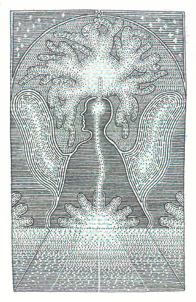 Marina Pallares made this linocut print, ‘El Arbol,’ in black and white. It’s a card, maybe for a game, featuring a tree. The way the tree’s drawn with these tight, swirling lines, you can almost feel the artist digging into the linoleum, carving out each groove. The linework is just gorgeous, isn’t it? Look at the sky around the tree, how Pallares uses these curved lines to create a sense of depth, like the tree is standing in a hollow. And then there are these bottles hanging from the branches. I love that touch of surrealism. This isn’t just any tree; it’s a tree bearing the fruits of something else, something a little wild. It reminds me a bit of Kiki Smith's prints, where the body and nature intertwine in strange and wonderful ways. Just like in Kiki Smith’s work, here the boundaries between what’s natural and what’s human-made get delightfully blurred. Art is an ongoing conversation, always responding and reinterpreting.