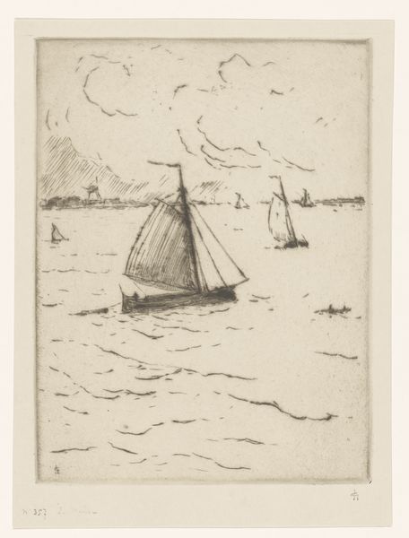 Willem Bastiaan Tholen made this drawing of a sailboat with pencil on paper. It's all about the process, you know? Seeing the world and then re-seeing it again through the tip of your pencil. What gets me is how Tholen uses the pencil to create depth. The water is all these little, choppy lines, but then the sky is softer, smudgier. Like he’s feeling the difference between the wild sea and the open air. Look at the way he's scribbled the boat itself. It's not precise, but you get the sense of its bulk, how it sits heavy in the water. Tholen reminds me of James McNeill Whistler, another artist who loved capturing these quiet, in-between moments. But where Whistler goes for dreamy abstraction, Tholen keeps one foot in the real world. It’s like he’s saying, "I see you, boat. I see you, sea. And I'm not going to pretend I know exactly what you mean.”